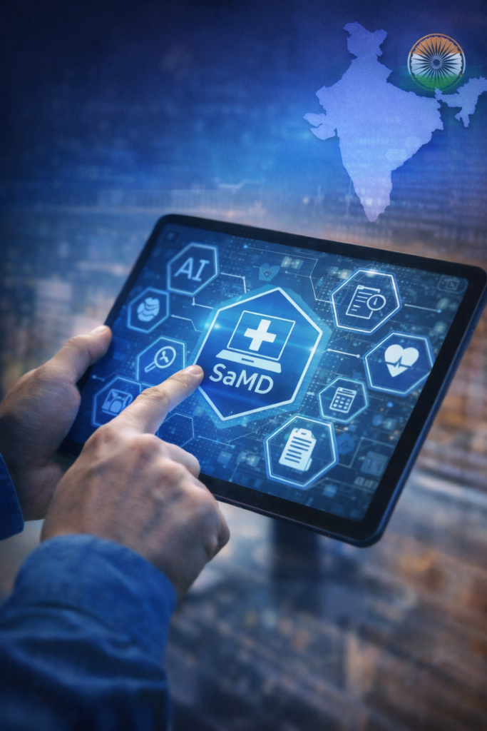 Software as a Medical Device (SaMD) is increasingly important in healthcare innovation, standalone software that performs medical purposes such as diagnosis, monitoring, prediction, or treatment without requiring a physical hardware medical device. In India, SaMD falls under the regulatory framework of the Central Drugs Standard Control Organisation (CDSCO) as defined by the Medical Devices Rules, 2017.